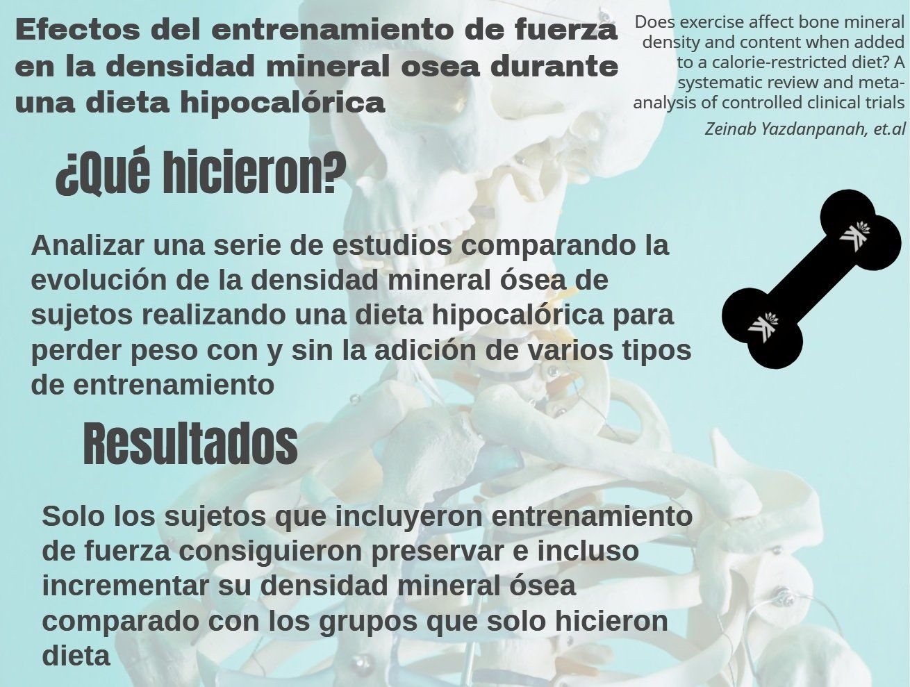 El entrenamiento de fuerza es un añadido de vital importancia en nuestras intervenciones de pérdida de peso, como podemos ver en el siguiente estudio en el que podemos ver como aquellas personas que no realizan entrenamiento de fuerza acaban por perder densidad mineral osea cuando hacen una dieta hipocalórica para perder peso: https://link.springer.com/article/10.1007/s00198-021-06187-9?fbclid=IwAR1kCMB4jhzEUmqULYorQMjAt7K11KAWGtu64kcq5jy_20stLRe9NPK3aQQ#Tab3 (Pequeña aclaración para los que pinchéis en el estudio y no estéis familiarizados con la terminología anglosajona para distintas clases de ejercicio, el entrenamiento de fuerza en inglés recibe el nombre de resistance exercise, entrenamiento con resistencias externas, que puede ser un poco confuso, siendo endurance exercise el término empleado para referirse a lo que aquí llamamos entrenamiento de resistencia o fondo.) Si quieres aprender más acerca de la importancia del entrenamiento de dieta cuando quieres perder peso o como prevenir la osteoporosis a través del ejercicio, no te pierdas nuestros siguientes artículos: https://www.kaizenepn.es/articulos/fuerza-grasa https://www.kaizenepn.es/articulos/osteoporosis-parte-I https://www.kaizenepn.es/articulos/osteoporosis-parte-II #alcorcon #entrenamientopersonal #nutricion #perderpeso #perdergrasa #fatloss #osteoporosis #ejercicio #salud #dieta